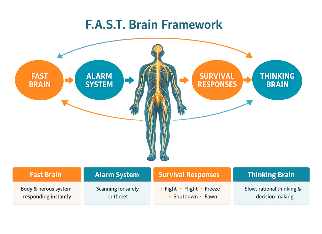 To help explain the nervous system in a clear and practical way, I use a simple model called the F.A.S.T. Brain Framework.